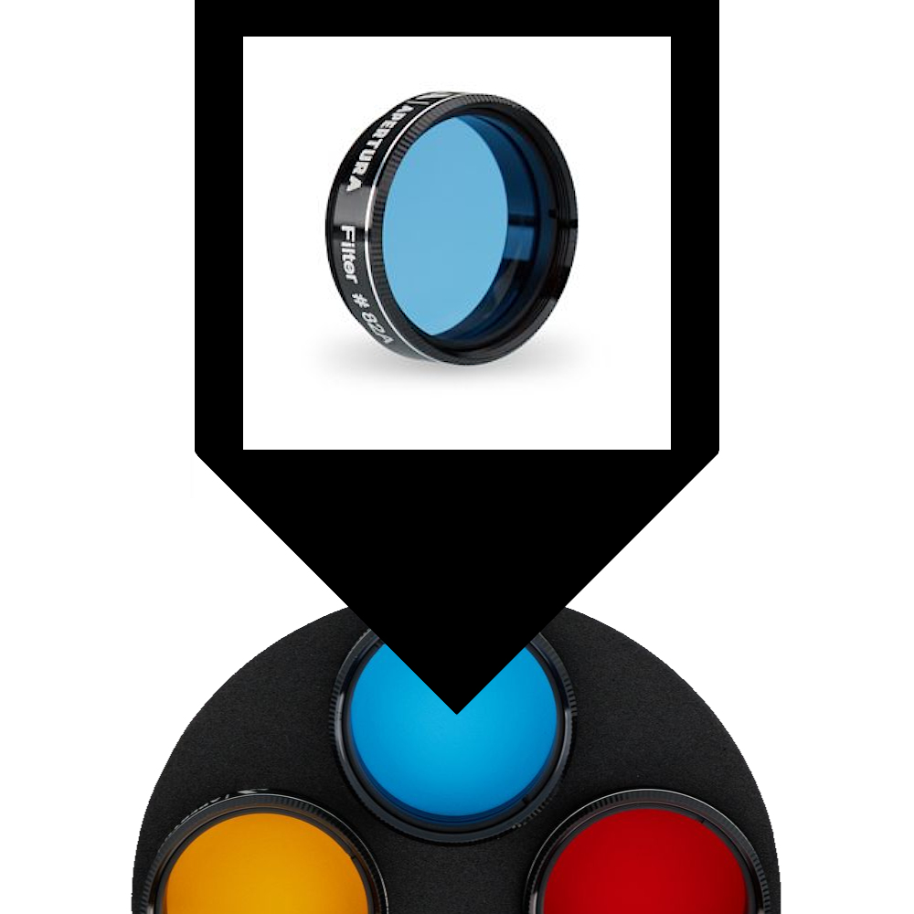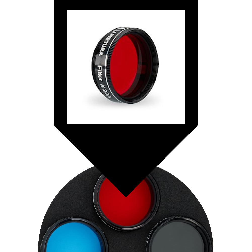 The Apertura 1.25" Lunar & Planetary Filter Set improves your view of all our planetary neighbors and the Moon with just one kit!