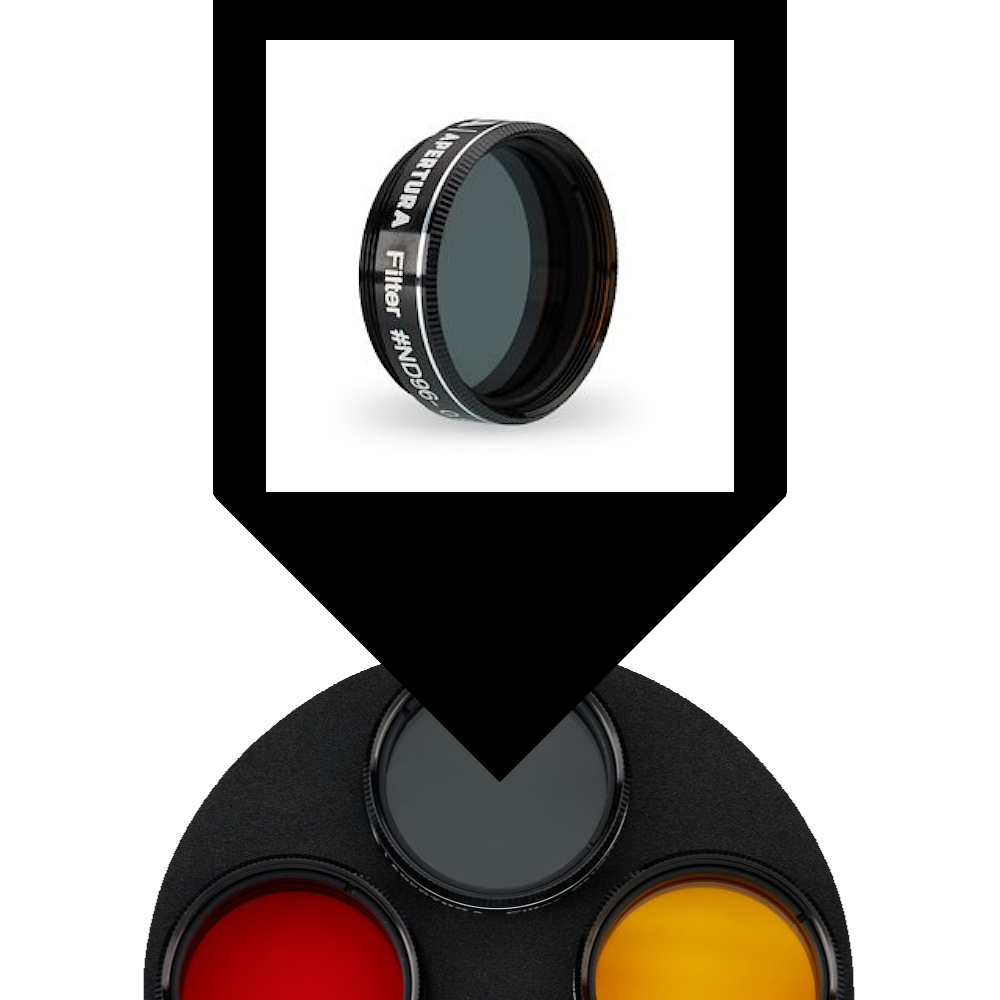 Make the bands of Jupiter pop, bring out the faint detail hidden behind the incredible illumination of our Moon, highlight Mars' polar ice caps, and more with just one filter set! With a curated selection of filters, this set will enhance your view of some of our solar system's most inspiring observable objects. Elevate your exploration of our Moon and planetary neighbors today, with the Apertura 1.25" Lunar & Planetary Filter Set!