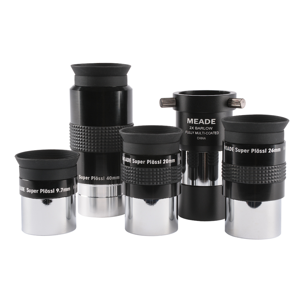 With four of Meade's 4000 series Super Plossl Eyepieces and one excellent 2X Barlow, this bundle brings eight different views to your observation session!